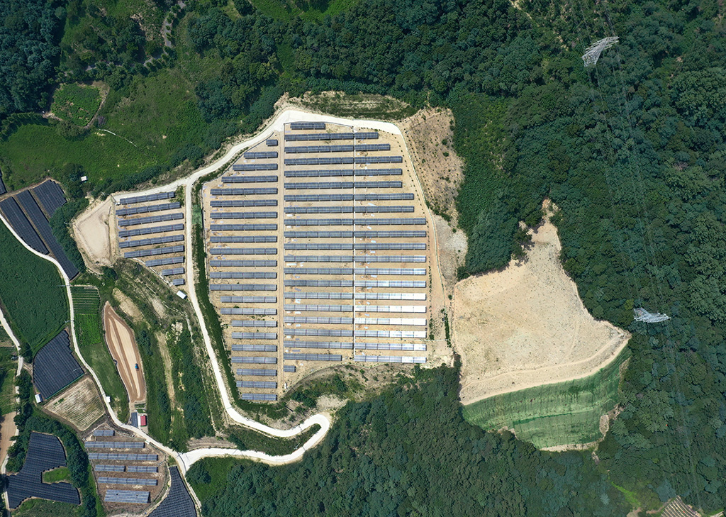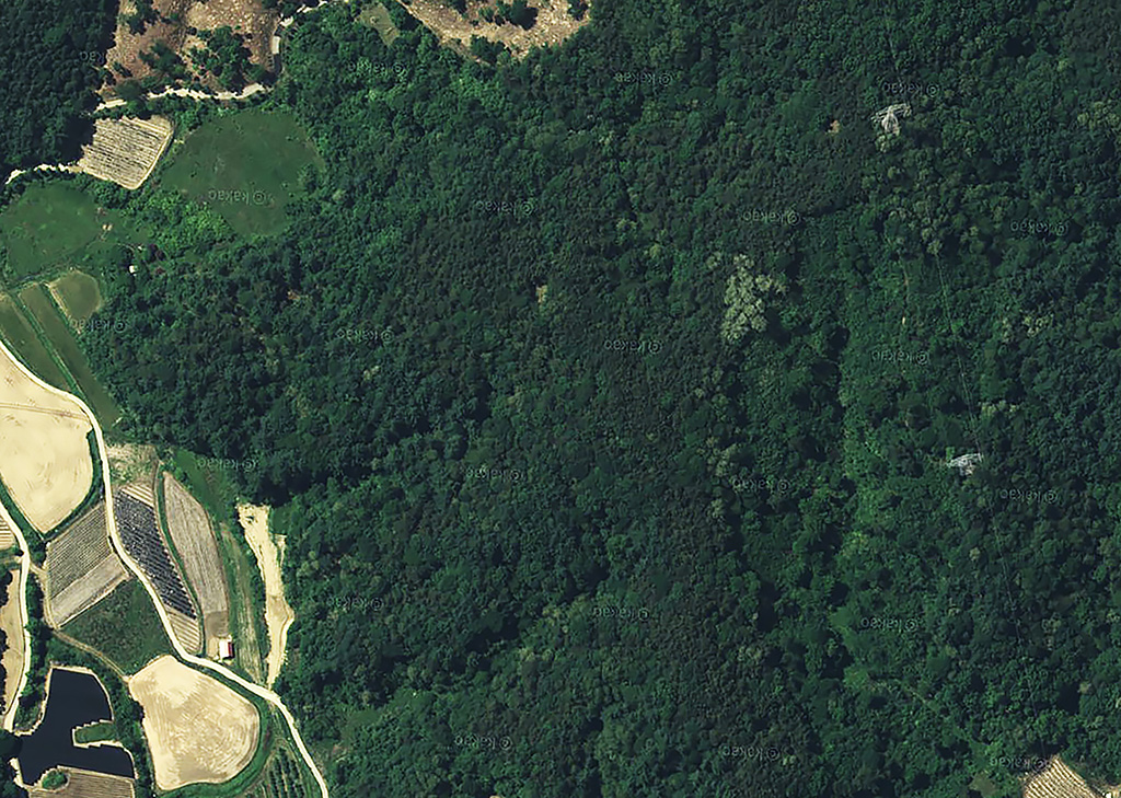 충남 금산군 제원면의 울창하던 숲이 3년만인 지난 10일 태양광 발전소로 변해 있다. 카카오맵ㆍ드론 촬영
